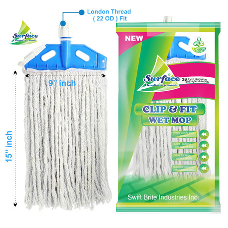 Best Mop , 9" Clip & Fit Wet Mop with 300g Cotton Refill