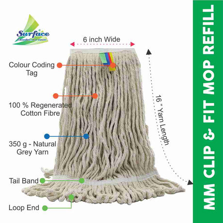 Refill of Best Mop, 9" Clip & Fit Cotton Wet Mop, 300g