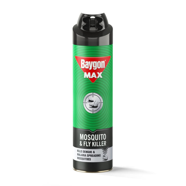 Baygon Mosquito & Fly Killer Spray kills mosquitoes on contact. Its Superior Active D-Trans Allethrin provides results like professional pest control treatment. It kills mosquitoes that may carry Dengue and Malaria.