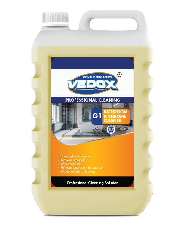 Bathroom and Chrome Cleaner - the ultimate solution for a gleaming bathroom and sparkling chrome fixtures. Experience the brilliance of Vedox as it effortlessly removes soap scum, water stains, and grime from bathroom surfaces, leaving them spotless and invigoratingly fragrant. From tiles to tubs and chrome fixtures, Vedox Cleaner delivers unparalleled results with a gentle touch.